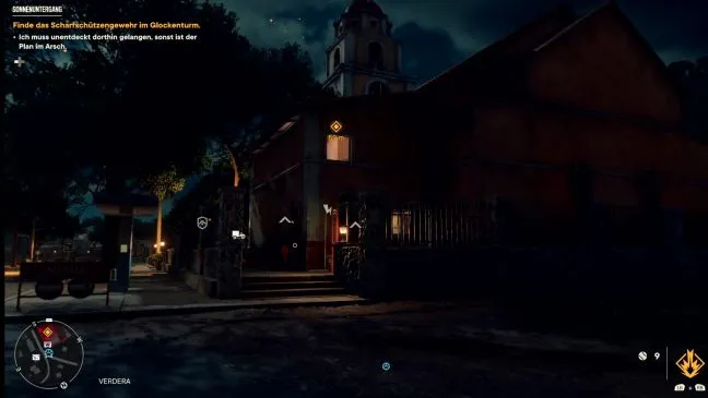 В деревне Вердера, расположенной к северо-востоку от Коста-Дель-Мар и в центре Лозании, неспокойно: Хосе Кастильо схватил нескольких партизан и хочет их казнить. Поэтому вам следует войти в отмеченную колокольню и занять позицию у уже установленной снайперской винтовки.