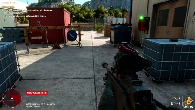 Международный аэропорт Новентармас расположен всего в нескольких метрах к востоку и, несмотря на свои размеры, удивительно хорошо охраняется. Особенно само здание, кишащее солдатами, с которыми трудно бороться. Но, к счастью, есть способ добраться до места назначения без противостояния.