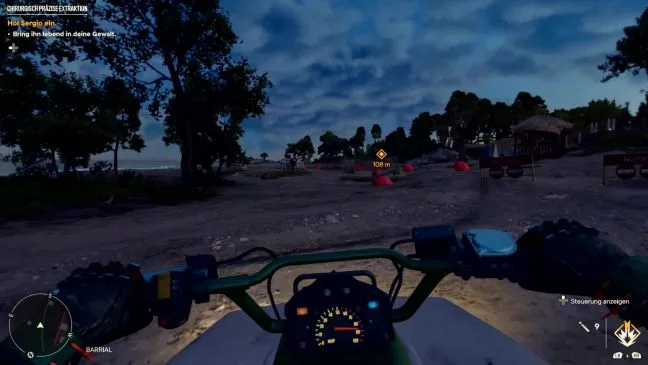 По сути, вам нужно просто следовать за Серхио и стрелять по его машине, пока она не сдастся. В остальном нужно быть осторожным на пляже и избегать больших красных мин. Если Вы попадете хотя бы на одну из них, то будете немедленно убиты.