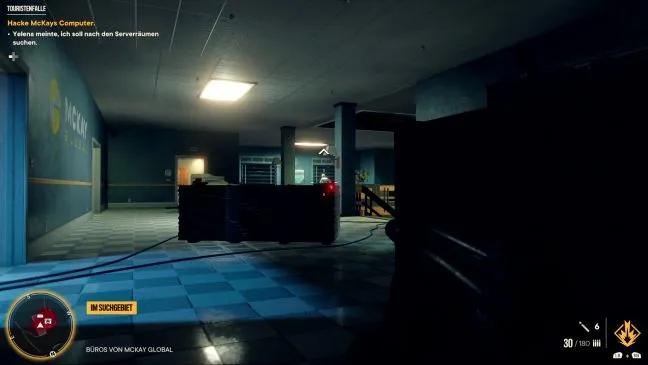 Вы отключили все глушилки в истории "Яриан не беспокоить"? Тогда направляйтесь к новому маркеру, который приведет вас в офис McKay Global. Там вам нужно взломать два компьютера: один на первом этаже, другой - на втором.