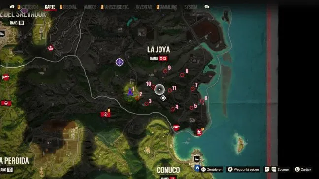 Четвертый глушитель: Для поиска четвертого глушителя пройдите на восток от офиса НДП в Ла-Хойе и направьтесь к запретной зоне, которая видна на обзорной карте справа от надписи Río de la Madona.