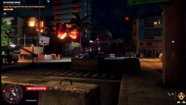 После того как все три взрывных устройства будут установлены, необходимо продолжить путь на северо-запад к месту встречи с Хуаном. Для этого снова пройдите зигзагом по улицам Эспарансы. Радар покажет Вам, где безопасно, а где можно ожидать появления врагов.