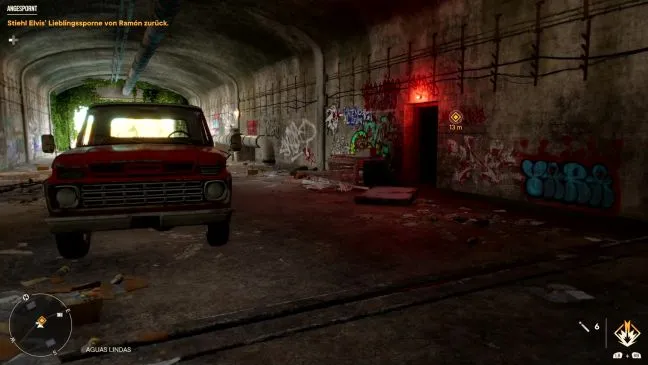 Вы встречаетесь с Элвисом Карбальо в центре Коста-Дель-Мар, а точнее, в лагере партизан Finca Montero. У него украли шпоры его боевого петуха Гордито, и поэтому он хочет, чтобы Вы вернули их ему. Новый целевой маркер ведет вас на север к центру Агуас Линдас, а точнее, через подземный переход к проходу с красным фонарем над ним. Войдя в него и пройдя одну комнату за другой, вы найдете труп и ключ-карту от бункера.