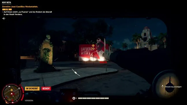 Все щиты расположены в центре города Вердера, столицы Лосании. Их можно узнать по темно-красному цвету и надписи La Fuerza Es El Camino A La Victoria. Хорошая новость: с помощью танка одного выстрела достаточно, чтобы разбить планшет на тысячу осколков. Плохая новость: по дороге вас будут атаковать несколько вражеских машин и вертолетов. С одной стороны, их нужно быстро уничтожить, но с другой - придется постоянно прерывать свой путь. Кроме того, вы быстро попадете под перекрестный огонь, если где-то застрянете или по другим причинам будете вынуждены ехать назад.
