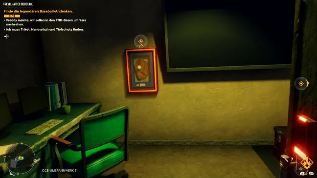 Бейсбольная перчатка находится на военной базе CCE substation 31, точнее, в небольшом домике охраны на северо-западе запретной зоны. Если вы уже захватили базу, то ключ автоматически окажется у вас в кармане и вы сможете войти в домик. Бейсбольная перчатка находится в стеклянной коробке, которая висит на стене.