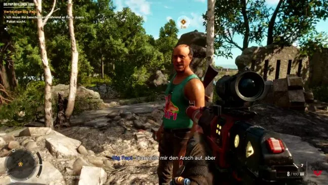 Если вы пойдете по дороге на дальний восток от Барриала и приблизитесь к небольшому кусочку острова, который на карте выглядит как нос, то получите радиосообщение от Хуана Кортеса. Он укажет Вам на место крушения "Большого Папи", которое сразу же будет отмечено на Вашем радаре и которое Вы должны посетить.