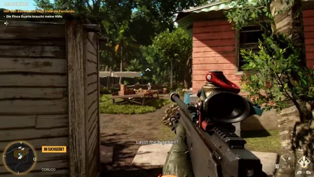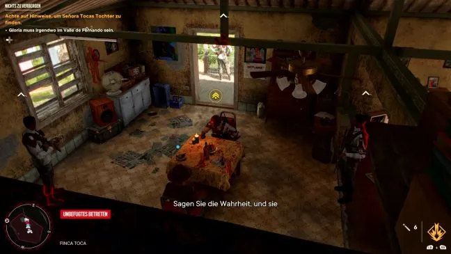Благодаря сержанту Савону вы знаете местонахождение Глории: Finca Juantorena. Соответственно, вы получаете новый маркер назначения в направлении юго-запада, где Глория сидит на корточках в юго-западном здании запретной зоны.
