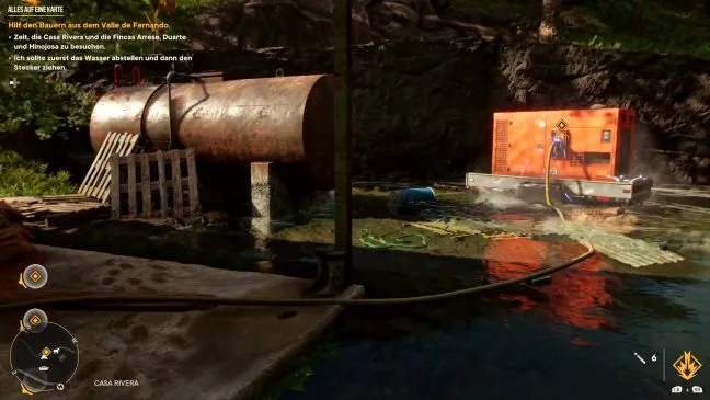 В нескольких сотнях метров к западу от Петры Тока находится Каса Ривера, где после разговора с женой фермера нужно выключить большую машину. Проблема в том, что вокруг него образовалась огромная лужа, которая электрически заряжена из-за желтого кабеля питания. Прежде чем добраться до станка, необходимо убрать воду.