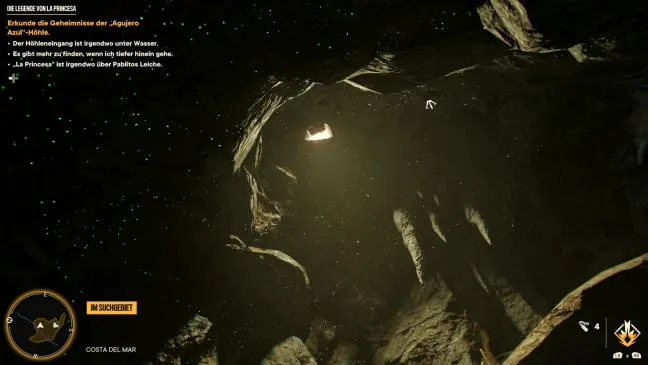 Если вы отправитесь на небольшой остров на северо-западе Коста Дель Мар и отметите на карте проходящий там поиск сокровищ, то заметите нечто необычное: Маркер цели находится не на острове, а под ним!