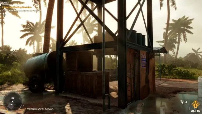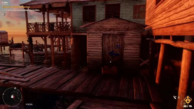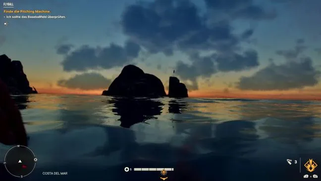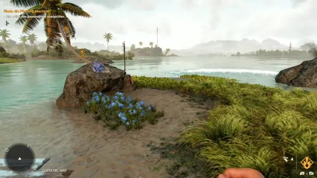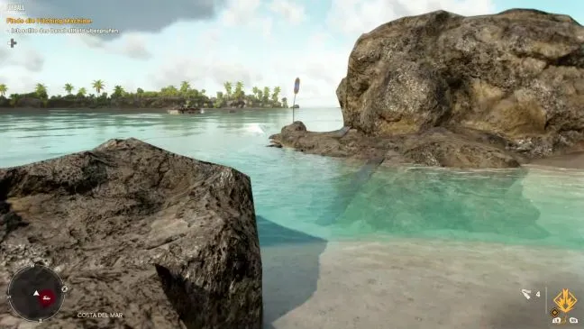 Найдите одну скалу, которая также отмечена синим цветом, и отправляйтесь к небольшому острову с плоскими скалами на юго-востоке. Идите прямо к следующему острову на юге, который вы заметите из-за изогнутой пальмы. Там Вы также найдете небольшую скалу, на которой висит первый криптографический стол.