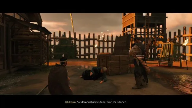 Как только вы попали в форт Накаяма, Исикава просит вас осмотреться. Найдите осиное гнездо и красную бочку перед деревянным забором форта. На заборе висит горящий фонарь, а внутри форта Вы увидите множество вражеских стрелков.
