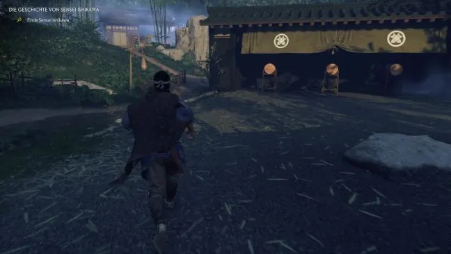 Вы обнаружите на полу простой кровавый след, а также несколько кровавых следов от стрел. Перед небольшой открытой юго-западной дверью вы обнаружите кровавые следы, по которым выйдете наружу. Они приведут вас через тропинку в другое, несколько меньшее здание, где вы найдете Исикаву. И только после разговора с ним начинается собственно задание.