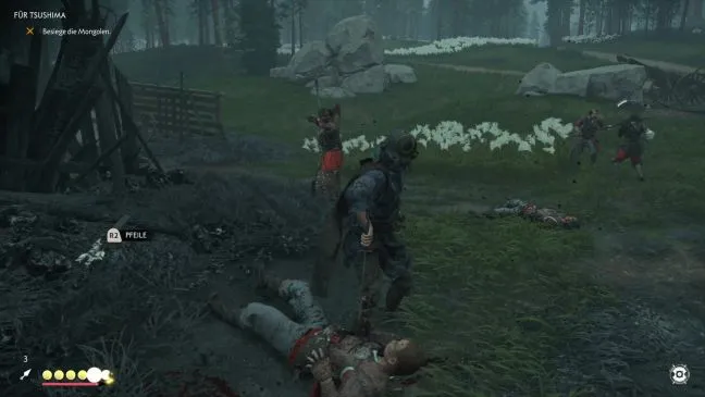 После того как вы выполните все поставленные задачи, вы получите последнее задание: вам предстоит найти и сразиться с другим монгольским вождем. На этот раз вам не придется долго искать и просто следовать за новым целевым маркером. На месте вас ждет поединок с военачальником Харунори.