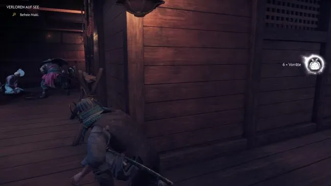 Вы сразу же причаливаете к монгольскому кораблю и можете ударить человека сзади как спереди, так и справа от вас. Затем пройдите внутрь корабля и с помощью фокусировки слуха обнаружите еще двух врагов. Один из них прислонился к углу, а другой нагнулся к пушке, расположенной рядом с ним. Таким образом, вы можете уничтожить обоих цепным убийством и, наконец, разобраться с тем, кто находится в другом конце корабля.