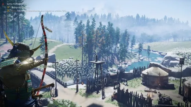 Это небольшой, управляемый лагерь, где мы рекомендуем использовать лук и стрелы. Если подойти к цели прямо с востока, то вы окажетесь на скале и сможете прицелиться в лагерь и всех монголов сверху. Выпускайте стрелы им в головы, начиная с трех лучников, стоящих на смотровых вышках на самом краю.