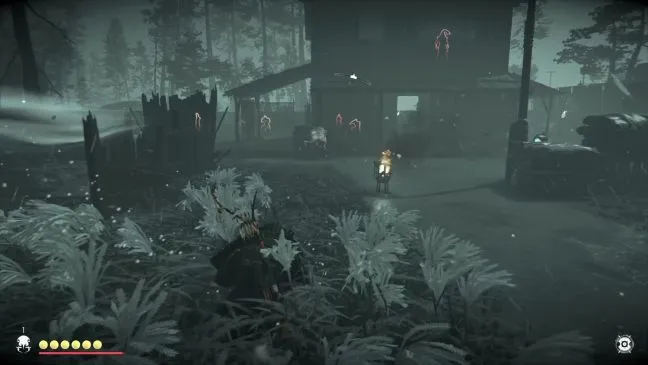 Чтобы пройти северную половину, выйдите из поместья через открытый западный вход и сразу же спрячьтесь справа в пампасной траве, растущей перед смотровой вышкой. Следите за охранником, стоящим лицом на север, и подкрадитесь к нему, как только он встанет между двумя длинными корявыми столбами.