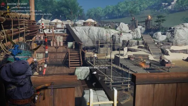 Верфь - один из крупнейших районов монголов в Идзухаре. Вам предстоит убить всех врагов, освободить трех соколов и добыть четыре знамени сасимоно. Однако мы расскажем вам о довольно простом приеме, благодаря которому вы сможете без особого труда освоить большую часть лагеря. Важно: Вам понадобится как можно больше стрел, как для короткоствольного, так и для длинноствольного лука.