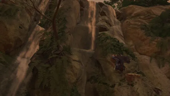 Теперь повернитесь и поднимайтесь по стене, а также по различным веткам, пока не достигнете вершины водопада. Затем остается всего несколько метров до святилища и талисмана Мидзу-но Ками.