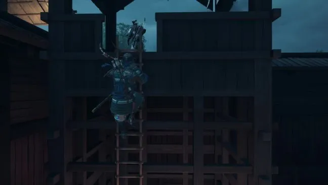 К сожалению, со стены на башню так просто не забраться: Вместо этого придется спрыгнуть на землю и подняться по лестнице. Это довольно сложно, так как рядом с Вами находится монгол, и велика вероятность, что он Вас поймает.