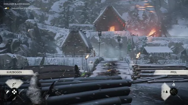 За мостом вы найдете еще больше врагов, которых следует расстреливать с расстояния из лука. В любом случае, на круглой площади достаточно укрытий, чтобы защитить вас от глаз монголов. Им даже так трудно сориентироваться, что даже если они промахнутся, им не придет в голову переходить мост и искать вас на круглой площади.