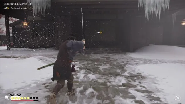 Пока вы старательно уничтожаете одного врага за другим, вы автоматически попадаете в здание и должны поговорить с женщиной, которая сдается вам в плен. Она утверждает, что Хана отступила в особняк на холме. Следуйте за Масако, пока не дойдете до особняка. Там сразу же объявится ее сестра и пошлет за вами еще несколько самураев.