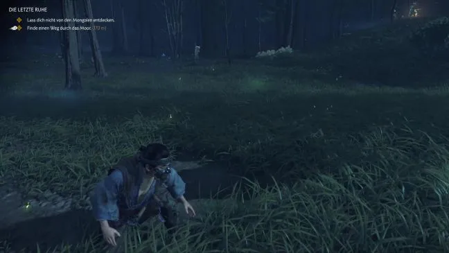 Вскоре после этого Вы попадете в болото, которое теперь придется пересекать самостоятельно, и опять же, чтобы его не обнаружили монголы. Сначала найдите дорогу, которая ведет прямо к полудюжине врагов и поэтому не является для Вас хорошим вариантом. Слева от дороги вы увидите холм, на котором также находится несколько злодеев. Если вы прокрадетесь слева, то сможете подкараулить одного охранника сзади. Вы узнаете ее по горящему факелу, который она несет. Она также стоит перед ярким голубым цветком.