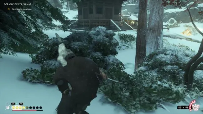 Норио говорит вам, что хочет вернуть себе кедровый храм. Вы едете с ним к храму и сначала встречаете нескольких друзей-монахов. Они вместе с Норио бегут ко входу в храм, поэтому вы следуете за ними и вступаете в бой.