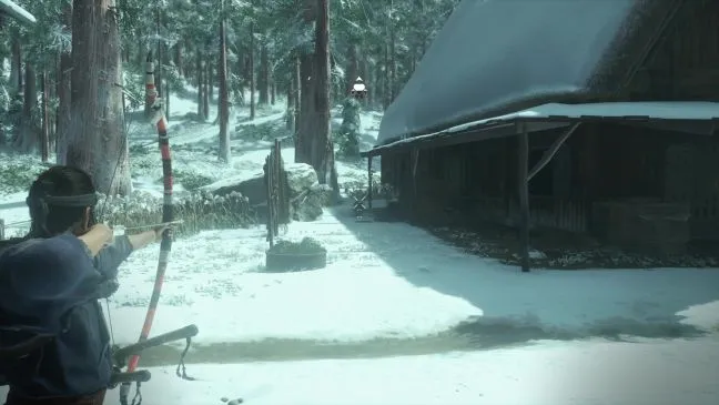 Не обращайте внимания на фасад здания, который виден справа от вас, где также находятся охранник и собака. Оба они находятся в поле зрения охранника, который находится в здании и с которым вы разберетесь позже. Вместо этого пройдите на северо-запад мимо юго-западных ворот с висящим трупом и закрепитесь за повозкой в пампасной траве. Найдите еще один столб на севере и терпеливо ждите, пока на нем не поселится второй орел, которого можно будет подстрелить, как и предыдущего.
