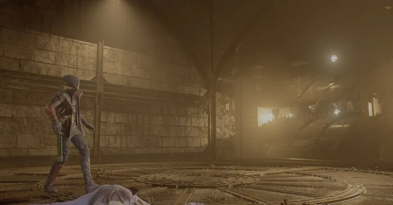 Проберитесь в фойе особняка и уничтожьте двух охранников. Затем исследуйте след на полу, прямо возле большого дерева, с помощью сканера AR. Прямо рядом с кровавым следом вы увидите скрытый механизм в полу. Если вы просканируете его, то сможете проследить его проводку до соседней лампы на каменном столбе. Теперь следуйте по его кабелю в следующую зону, где вам придется искать источник энергии, но также придется иметь дело с большим количеством бандитов.