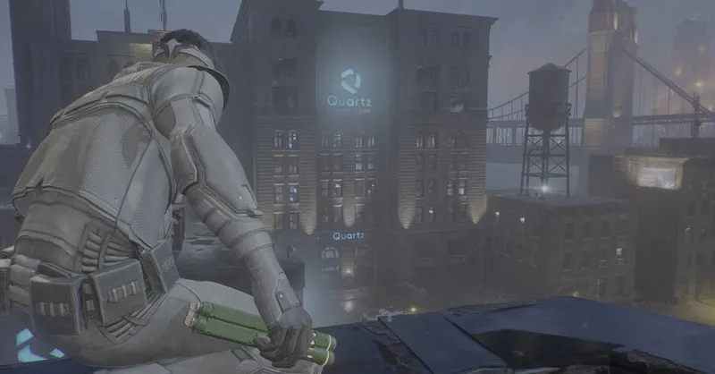 Миссия начинается перед зданием «Кварц», и сначала вам следует просканировать всех врагов, прежде чем уничтожить трех снайперов на крышах. Это даст вам больше шансов действовать незаметно. Теперь очистите весь двор и войдите в здание в отмеченном месте. Заберитесь в вентиляционную шахту и выйдите на высокую балку над следующей группой врагов, что является хорошей стартовой позицией.