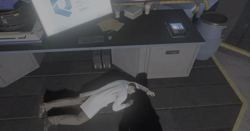 Теперь ищите тело ученого на среднем уровне, который рухнул прямо рядом с офисным столом. Там просканируйте открывалку сейфа на столе, а затем взаимодействуйте с ней, чтобы открыть сейф. Однако будьте внимательны: когда вы это сделаете, появятся еще два тяжеловооруженных врага, так что будьте готовы к новому противостоянию.