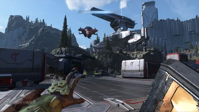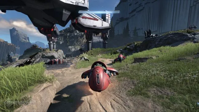 Как вы доберетесь до северной зенитной башни, имеет второстепенное значение. Неважно, будете ли вы взбираться по пересеченной местности с помощью грейферного крюка или пойдете по дороге и расправитесь с несколькими врагами. В любом случае вы найдете две пропагандистские башни и спартанское ядро. К этому времени суда с ядрами спартанцев будут сбрасывать все больше юнитов, так что вполне возможно, что вы уже собрали достаточно, чтобы разблокировать последний этап с захватом крюка, что принесет вам достижение.