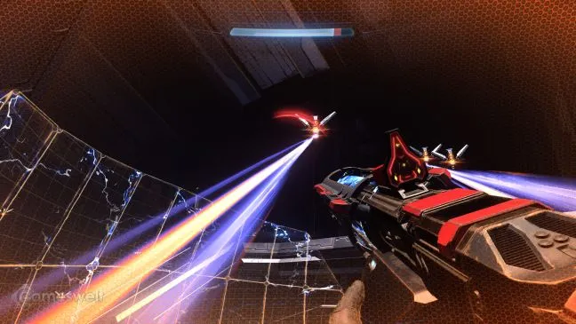 Их лазер также находится в вашем распоряжении. Посмотрите на два склада оружия в задней части гондолы. Если не понравится, там же висит винтовка Schick, но запас боеприпасов к ней скромный. Гондола прибудет в пункт назначения только после того, как вы победите всех охранников.