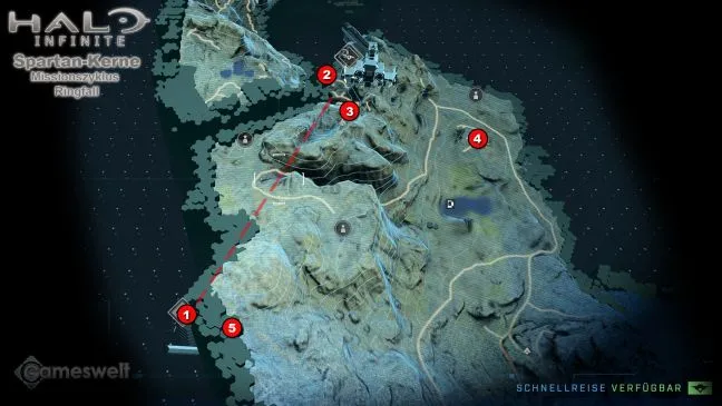 Уже в первой зоне кампании можно найти несколько ядер спартанцев, если сразу не перелететь к следующей цели. Посмотрите на нашу карту, чтобы получить общее представление. Ядра спартанцев на юге этого района следует оставить на потом, поскольку враги там очень сильны. Вы должны быть лучше экипированы, когда отправитесь туда. Вскоре вы все равно автоматически доберетесь до этой зоны, но захватите ее с южной стороны.