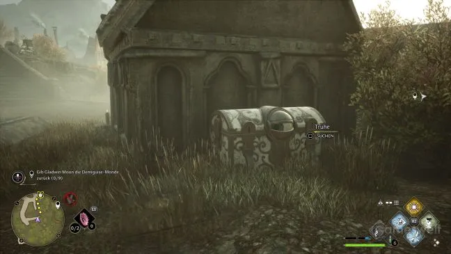 За одним из самых южных зданий деревни, недалеко от точки быстрого перемещения в Южный Хогсмид, вы найдете следующий сундук. Наша карта более показательна, чем любое описание.