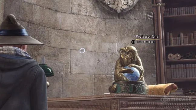 В зоне Library Annex переместитесь к точке быстрого перемещения Classroom Divination. Взбегите по винтовой лестнице, а затем поднимитесь по лестнице в класс. Статуэтка находится на столе учителя.