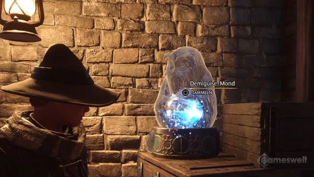 Чтобы найти эту луну, вам нужен Алохомора 2-го уровня. В зоне Астрономического крыла вы найдете точку быстрого перемещения Трансформационный двор. Оттуда пройдите на юг через дверь во внутреннее помещение и сверните на запад. Между двумя говорящими горгульями вы найдете дверь с замком 2-го уровня. Взломайте его и заберите статуэтки Демигиза в комнате позади.
