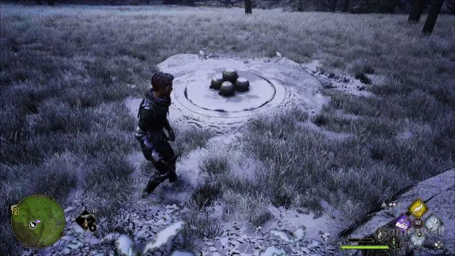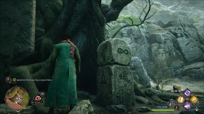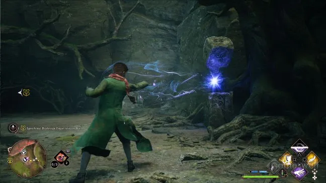 Еще одно очень простое задание. Все, что нужно сделать, - это уничтожить все пять столбов магических камней вокруг себя. Камни можно узнать по четырем зеленым точкам в форме маленького ромба. Или просто воспользовавшись Revelio и заметив синие метки.