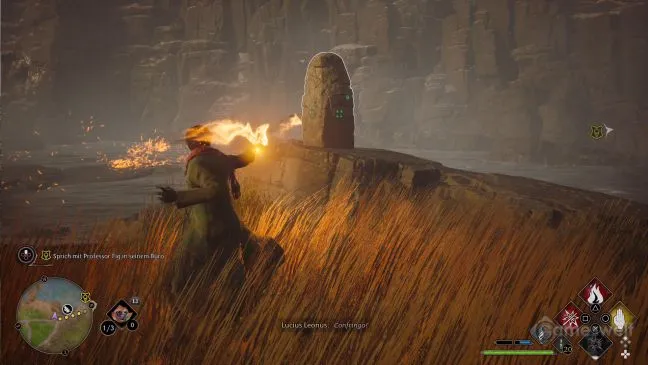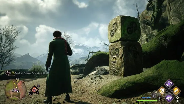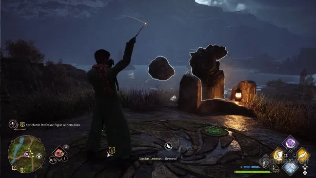 Если это и вызывает затруднения, то потому, что каменные шары спрятаны за скалами, и найти прямой путь для заклинания может быть непросто. Регулярно помогайте себе, произнося заклинание Revelio так, чтобы каменные шары были отмечены синим цветом. Даже если они находятся за препятствиями.