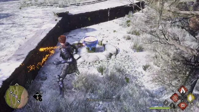 Звучит просто, но может оказаться сложным: В этом испытании необходимо зажечь горшки с огнем, расположенные на столбах вокруг наземной платформы. Чтобы справиться с испытанием, все три горшка должны гореть одновременно.