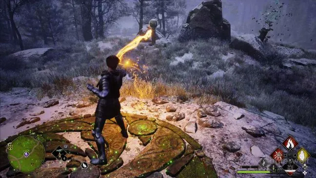 После подъема вам остается только поместить шар в яму. Единственная трудность - найти шар и яму. Смотрите в оба: оба элемента иногда прячутся за кустами, которые нужно сжечь заклинанием, чтобы добраться до них.