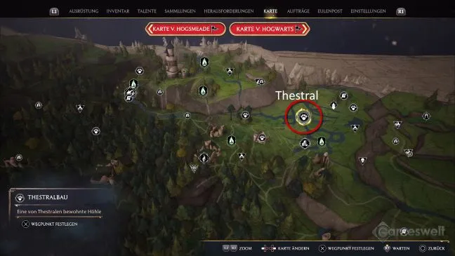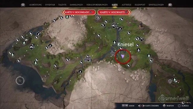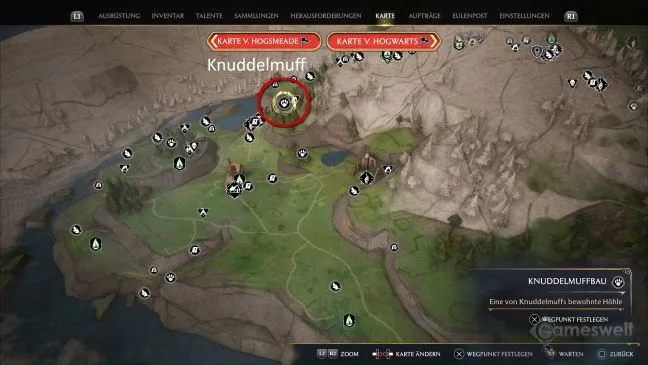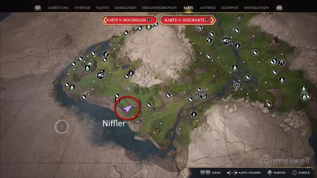 В небольшом районе к северу от Хогвартса можно встретить ниффлеров, самцы которых имеют темно-синий окрас, а самки - коричневый. Их также можно найти к востоку от Кинбриджа или на южной стороне скалы в районе Фельдкрофта. Блестящие особи ниффлера имеют светло-серый окрас.