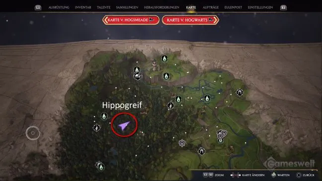 Эти особо пугливые существа при виде вас немедленно улетают. Поэтому подходить к ним нужно незаметно. Их можно встретить в Запретном лесу (в самом центре), на нижнем полуострове Кейпа в районе поместья и в районе побережья Пойдсир у точки быстрого передвижения "Южное побережье Пойдсир". Разница между мужскими и женскими особями невелика, поскольку они бывают разных цветов. Однако обладатели предварительного заказа игры получат в качестве бонуса черного гиппогрифа. Блестящие особи имеют серый цвет.