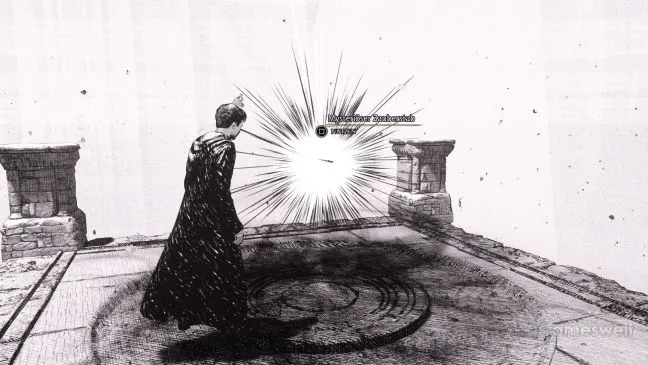 Книга сразу же втягивает вас в третье испытание, которое на этот раз сильно отличается от первых двух. Вместо того чтобы оказаться в подземелье, вы становитесь частью интерактивной последовательности воспоминаний, визуализированной карандашной штриховкой.
