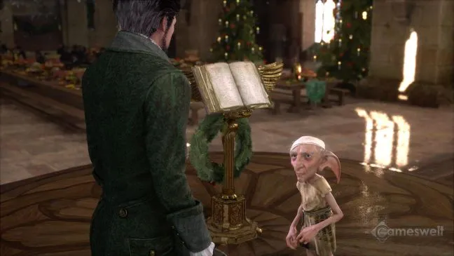 Затем пройдите прямо в большой зал и поговорите со Скропом, который стоит за столом. Домовой эльф осторожен и не расскажет вам всего, хотя и считает вас своим хозяином. Он будет танцевать вокруг да около, пока вы не зададите ему нужные вопросы. Прежде всего, вы должны оставаться доминирующим и не сдаваться, несмотря на его опасения.