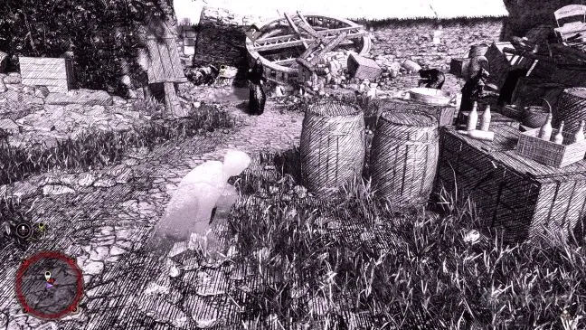 В начале экзамена вы видите только белый фон. Но на заднем плане с вами разговаривает Нив Фицджеральд. Она ведет вас через это воспоминание. Как только окружающая обстановка станет карандашной штриховкой, вы сможете двигаться и осматривать воспоминание. Идите прямо в деревню, которая находится перед вами.