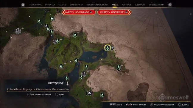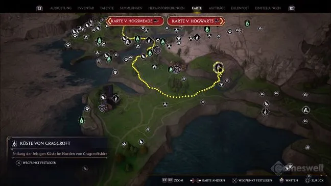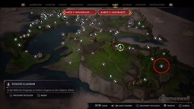 Отправляйтесь в точку быстрого перемещения Замок Клагмар на побережье Клагмар (см. нашу фотографию). Оттуда на метле можно быстро долететь до соседнего района Beastie, который находится чуть дальше на юго-востоке.