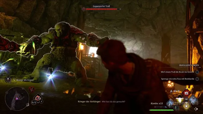 Идите по лестнице вверх, пока не начнется сцена, в которой Ранрок отдает приказы. Здесь происходит бой с гоблинами и бронированным троллем.