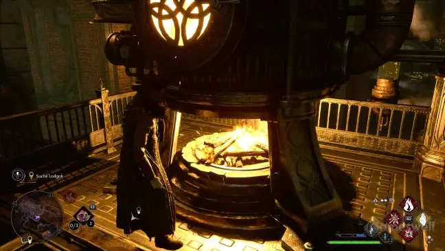 Если вы пойдете по тропинке, то дойдете до парового котла, но он холодный. Используйте заклинание огня, чтобы зажечь дрова под котлом и запустить паровую систему.