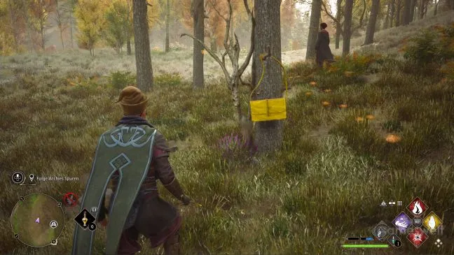 В лесу первая остановка - небольшой палаточный лагерь, который, вероятно, служил Арчи лесным убежищем. Используйте заклинание Revelio, чтобы обнаружить две вещи: страницу руководства (Black Hebride) и следы Арчи.